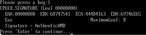 Print(L" 24: Display CPUID_EXTENDED_CPU_SIG leaf\n");