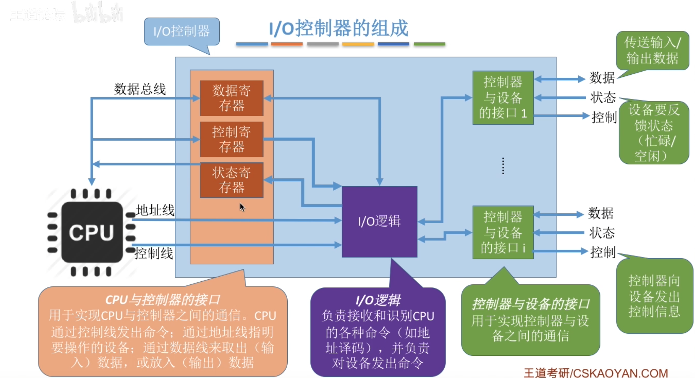 IO逻辑:负责CPU IO设备 机械设备间逻辑指令的转换编码