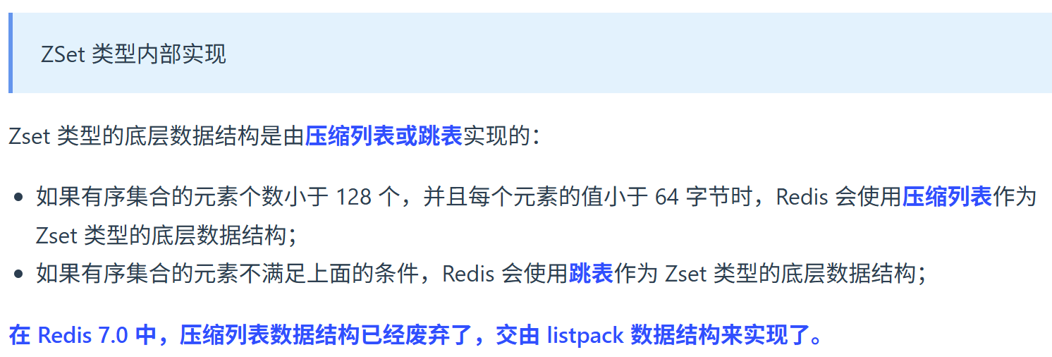 | Redis 7.0+ | listpack(ziplist 替代者) | skiplist + hashtable |