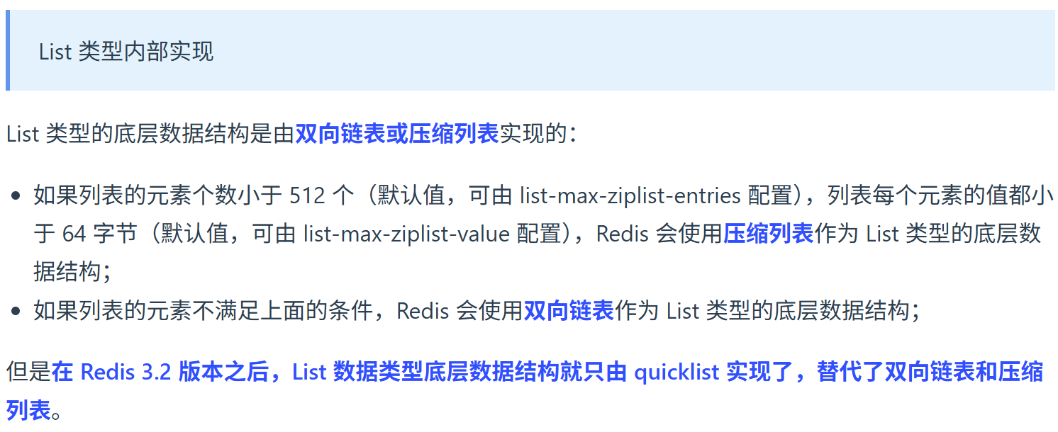 早期 List 用 ziplist + linkedlist 两种,但Redis 3.2 后,List 底层彻底统一为 quicklist