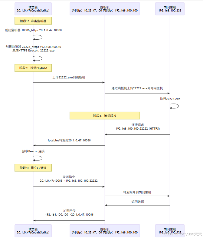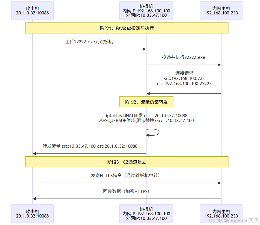 | 5 | 攻击机↔跳板机↔内网主机 | HTTPS/SMB | 持续C2通信 |
