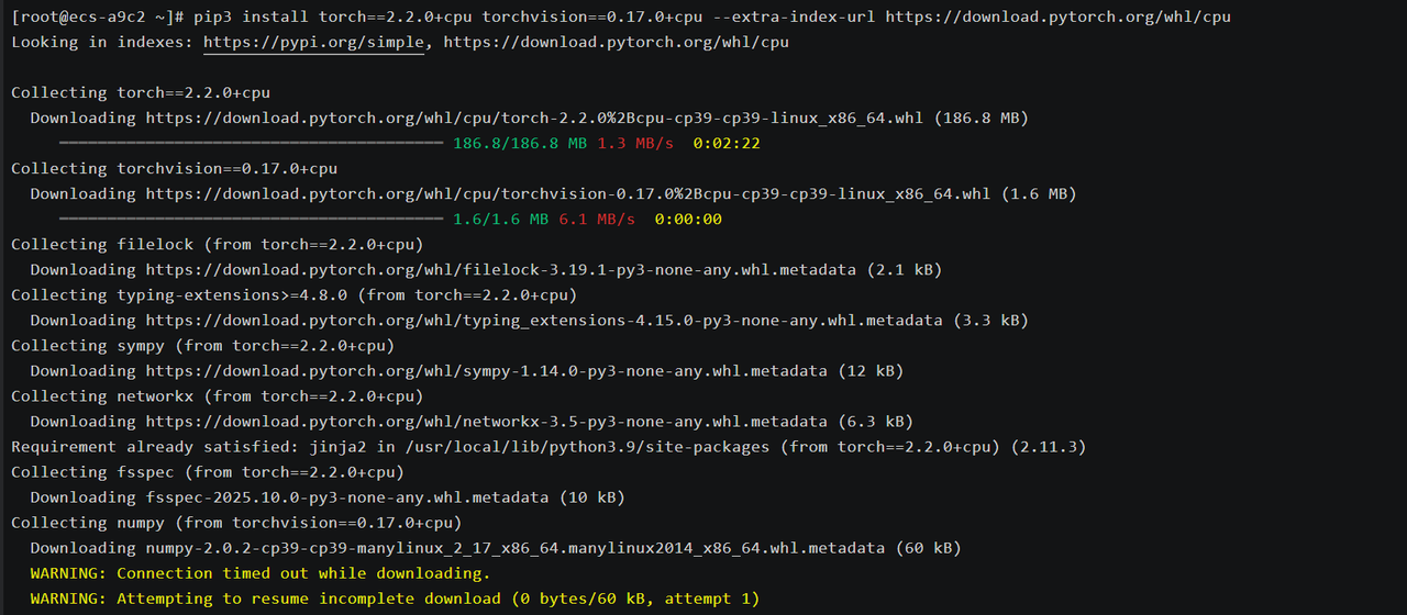 pip3 install torch==2.1.2 torchvision==0.16.2 psutil mlflow fio