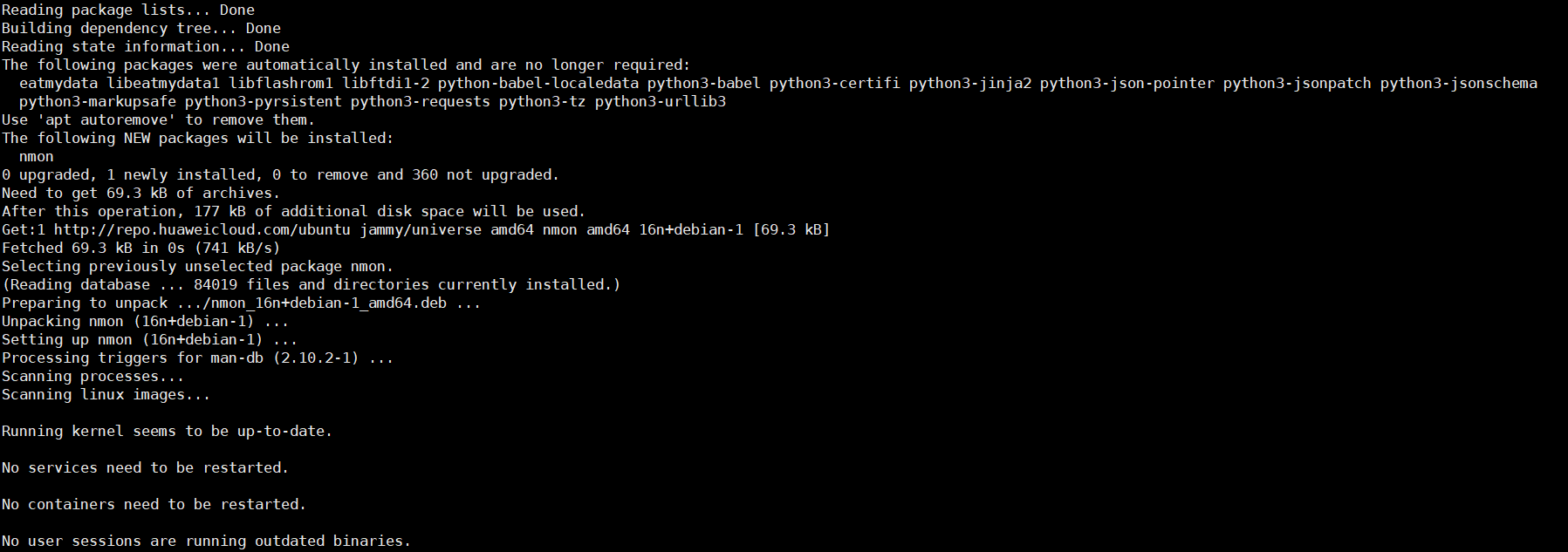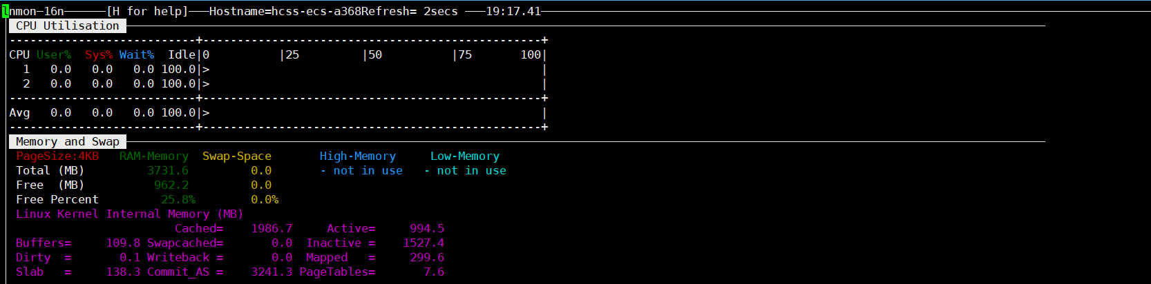 为确保测试数据真实反映系统性能,测试过程中通过 nmon 工具监控 CPU 利用率与内存状态: