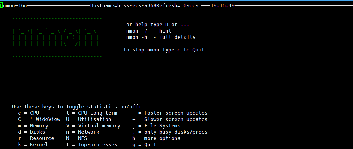 # 启动 nmon 监控,按 C 查看 CPU 状态,按 M 查看内存状态,按 Q 退出