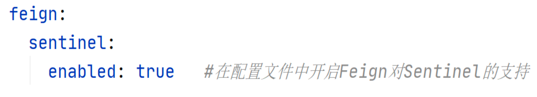 在配置⽂件中开启 Feign 对 Sentinel 的⽀持