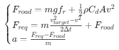 F_req = (m*(v_target_mps^2 - v_actual(k)^2)/(2*dt)) + F_road; % 需求力