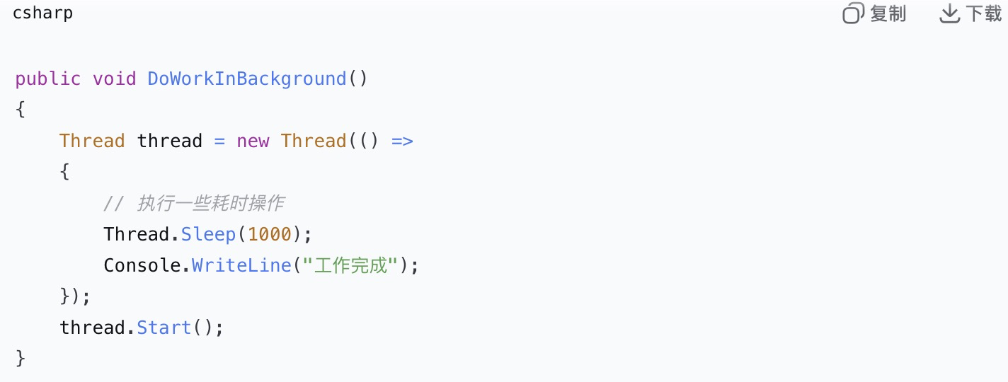 阻塞当前线程; 在C#中, 异步编程通常使用async和await关键字来实现; 异步编程的核心思想