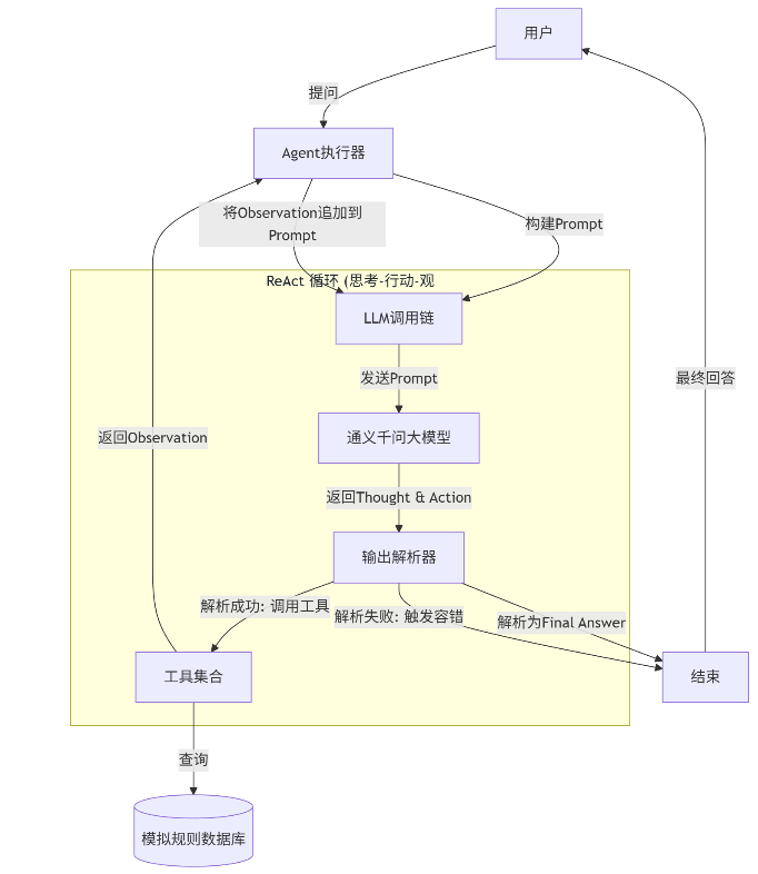 我们将使用 Python 、LangChain 和阿里 通义千问 (Qwen-Max) 大模型来实现,并重点讲解如何通过自定义 Prompt 模板 与增强型输出解析器来解决 Agent 常见的"幻觉"和"格式错误"问题。