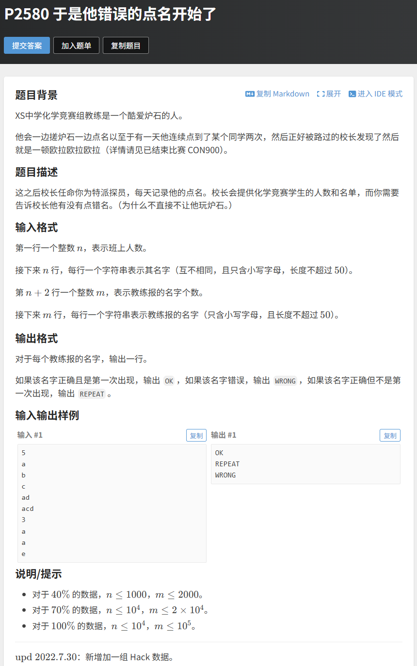 [4.2 题目 2:洛谷 P2580 于是他错误的点名开始了](#4.2 题目 2:洛谷 P2580 于是他错误的点名开始了)