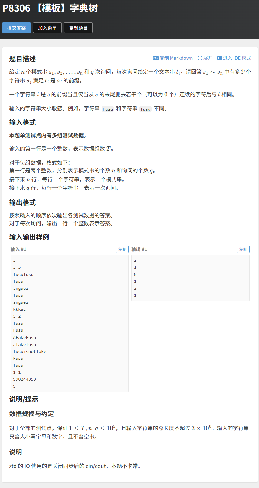 [4.1 题目 1:洛谷 P8306 【模板】字典树](#4.1 题目 1:洛谷 P8306 【模板】字典树)