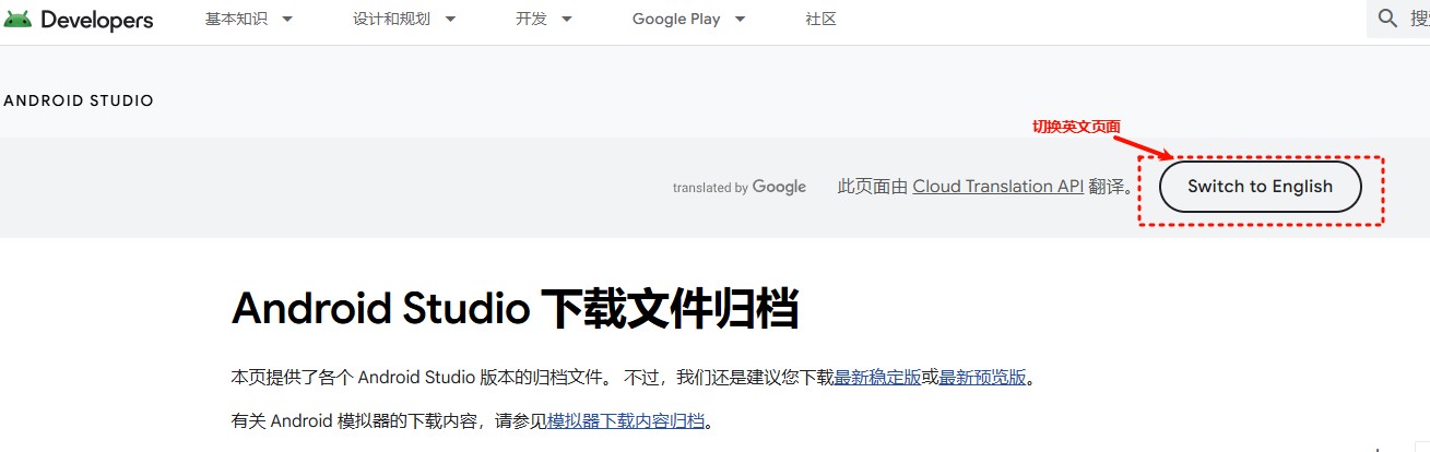 1. 打开 Android Studio官网,发现只有最新版本的下载地址: