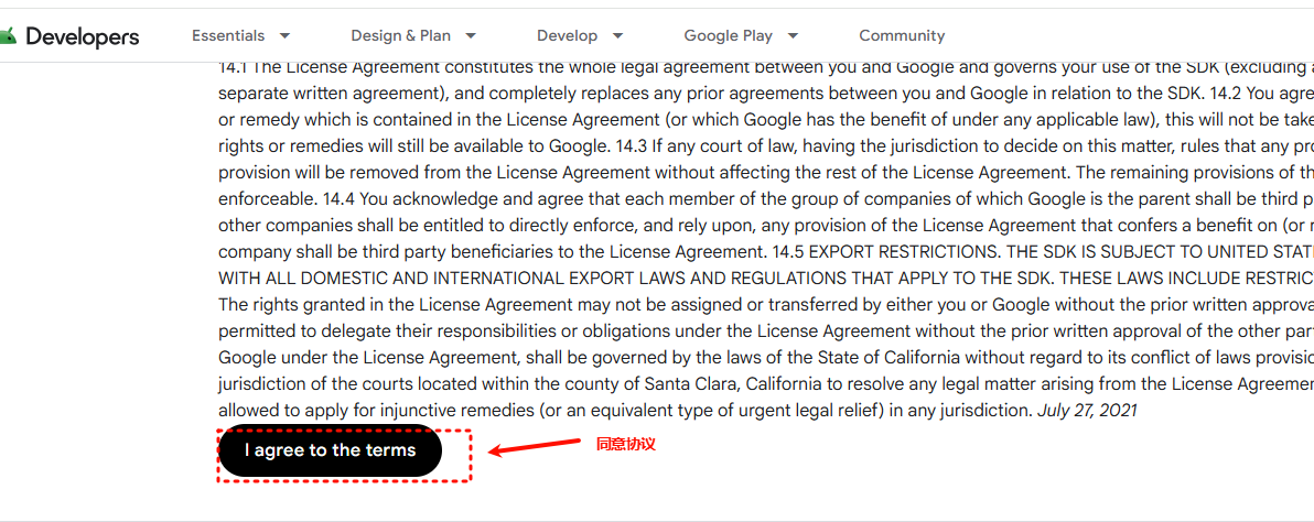 4. 进入到 Android 归档页面,点击同意协议: