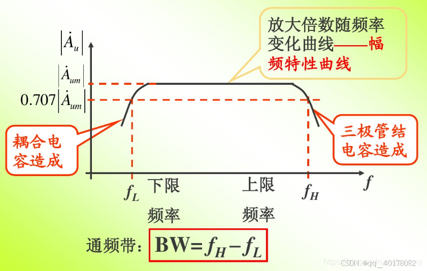 - 通频带fbw:fL与fH之间形成的频带称中频段,或通频带fbw。fbw=fH-fL