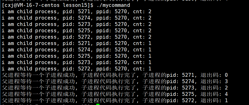 - 如上,我们就可以同时创建出来的多个子进程,并且对这多个子进程进行等待回收