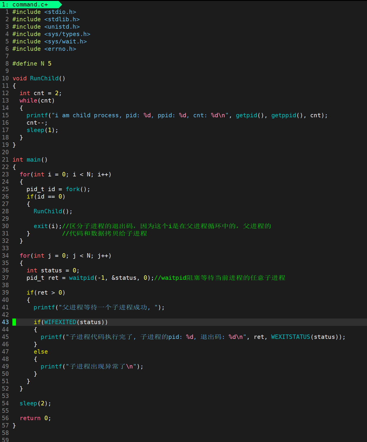 - 如果当前进程使用for循环去创建多个子进程的时候,我们该如何使用waitpid去进行多个子进程的等待呢?