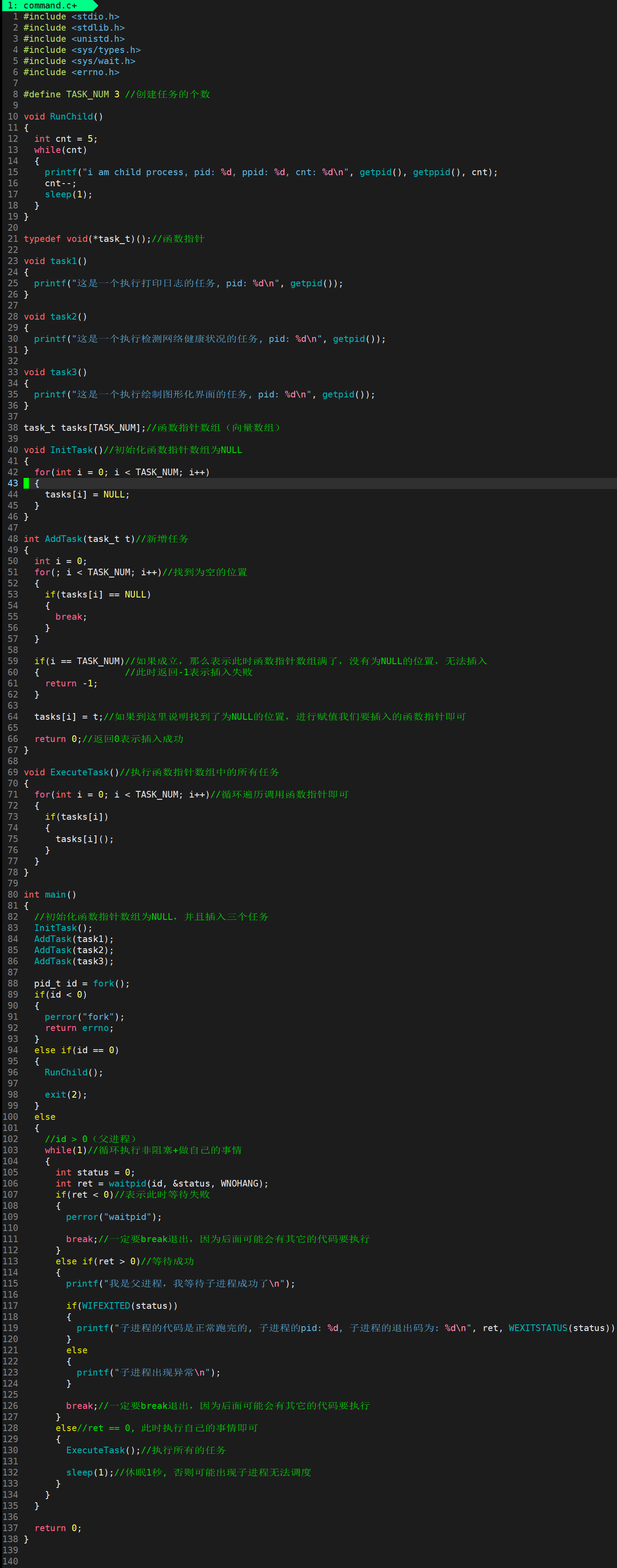 需要注意的是,在等待间隙执行的任务不宜过重(如大文件拷贝),应以轻量级任务为主(如状态检测或日志打印)。我们可以将这些任务封装到函数指针数组中,并通过管理函数进行增删查改操作。