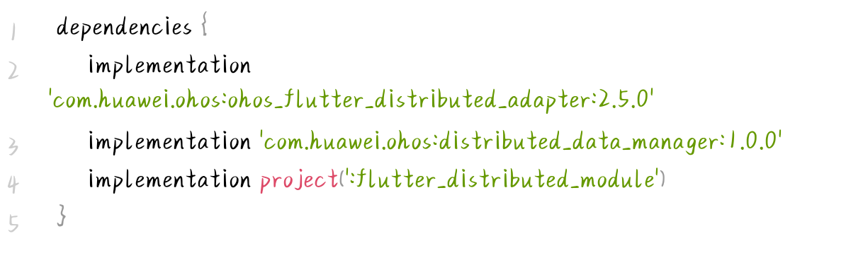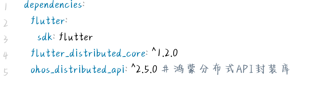 - Flutter模块 pubspec.yaml :配置分布式核心依赖