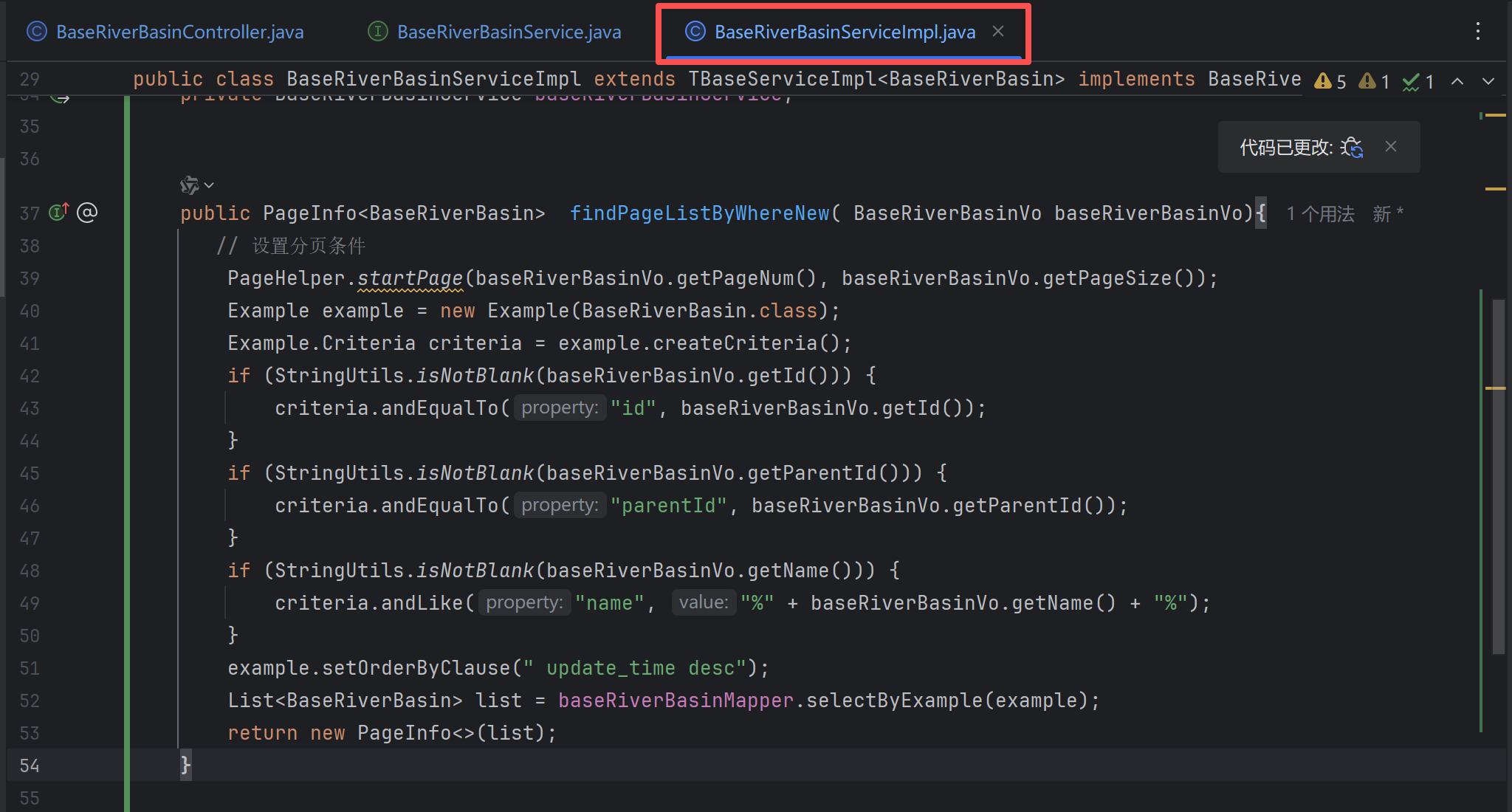 需要改的内容:controller,service接口,service实现,主要的内容写在service实现中。