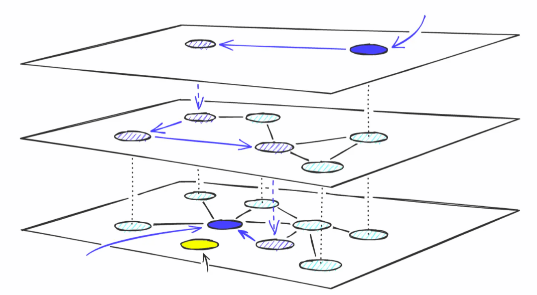 HNSW:近年来最火的检索算法之一。它基于图结构,每个向量是一个节点,通过分层网络快速找到近邻。特点是速度快、精度高,如今已经成为许多向量数据库的"标配"。