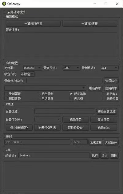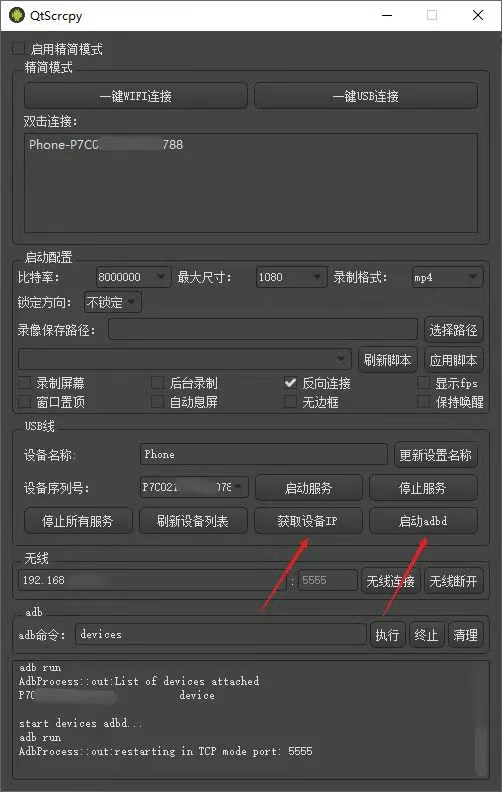 断开USB线,在 投屏软件 中输入设备IP+端口(默认5555),点击「无线连接」就可以了。