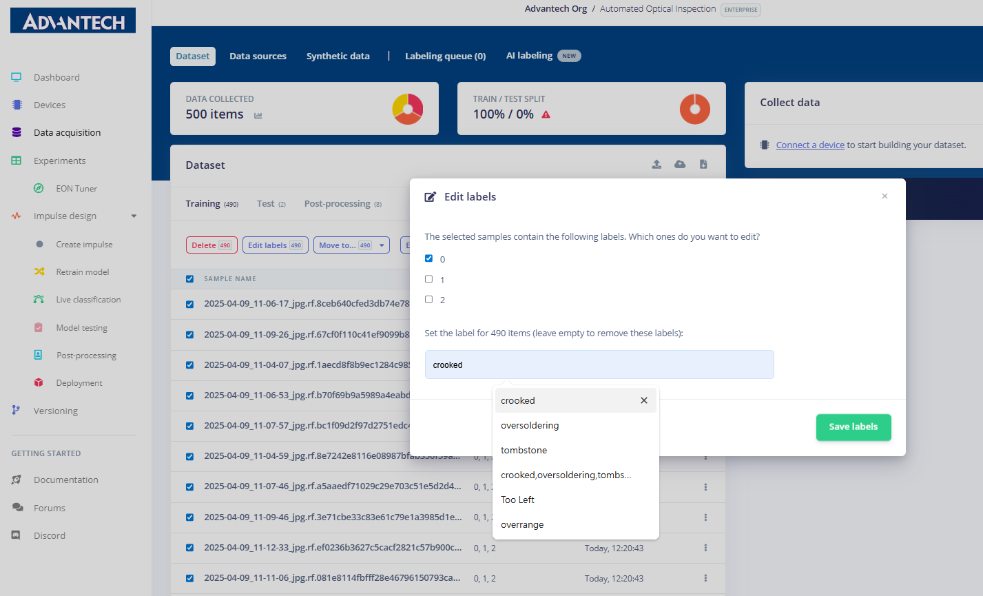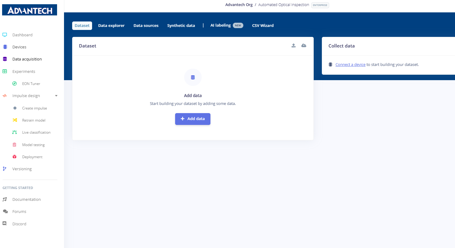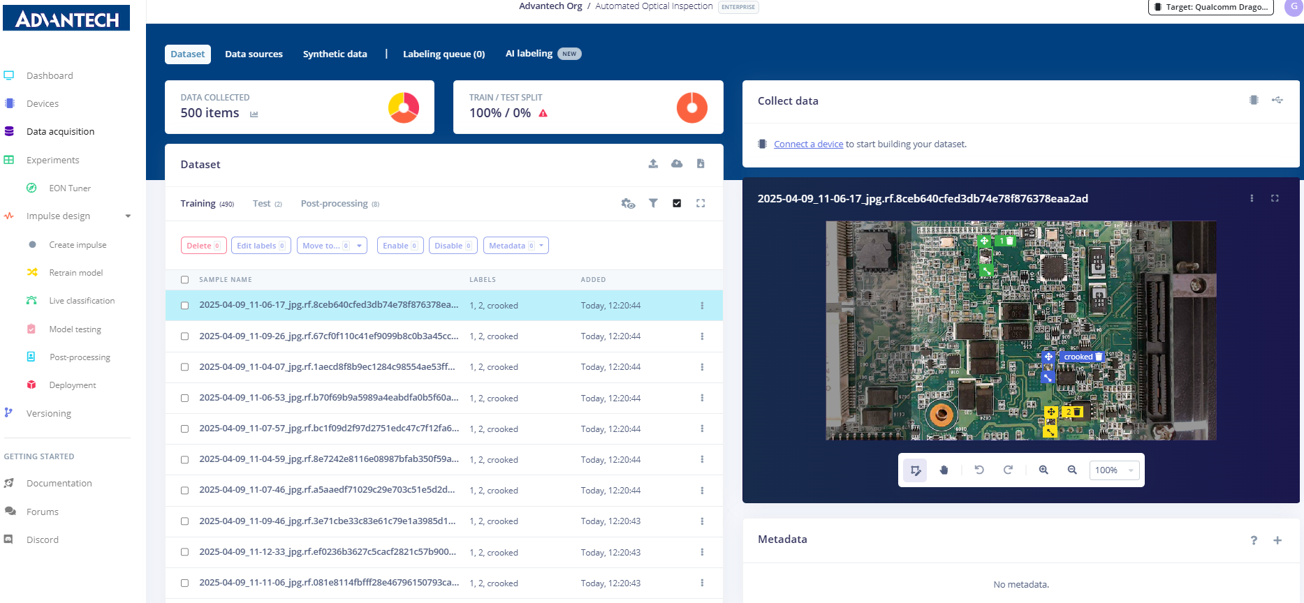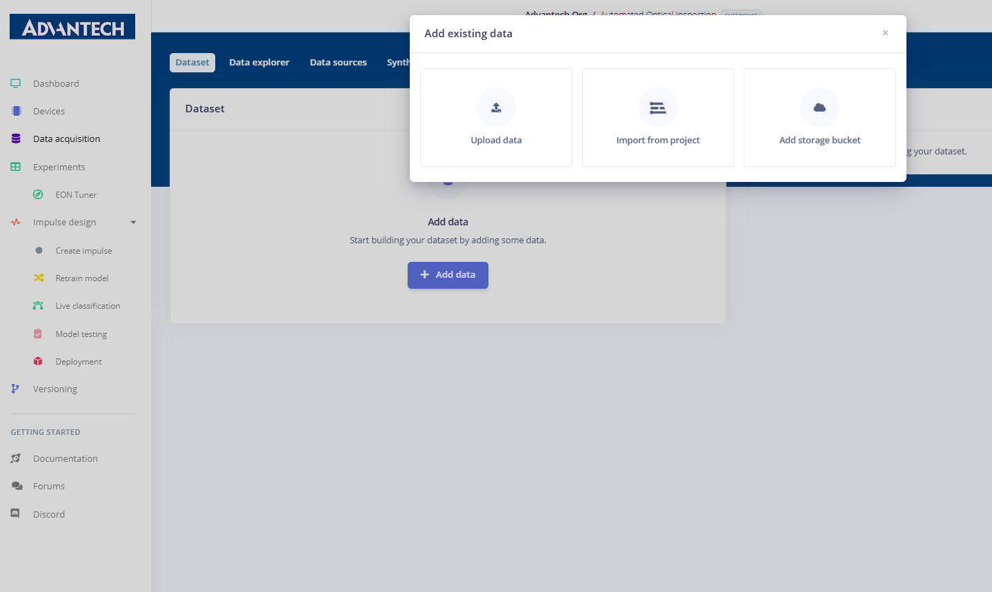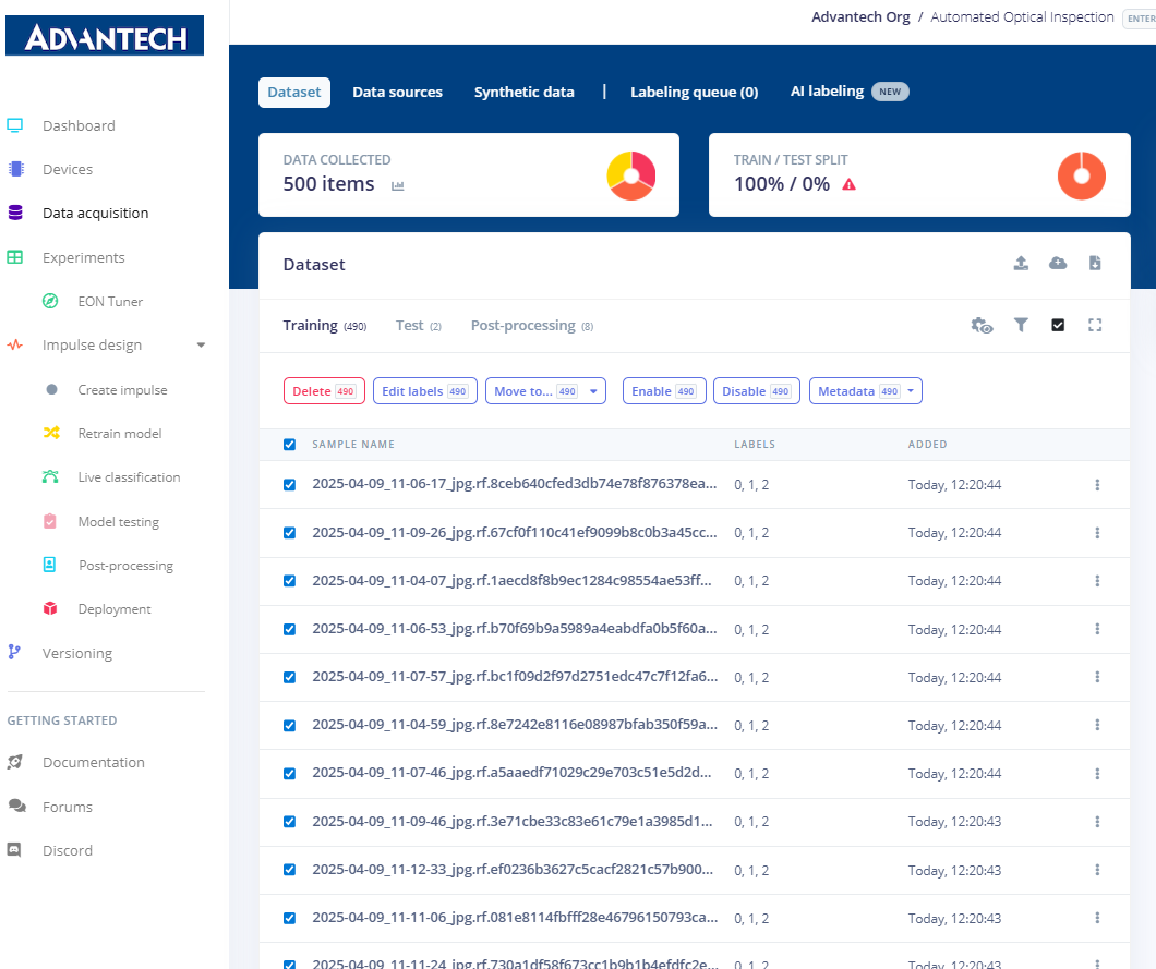 访问https://advantech.edgeimpulse.com/studio/677676/acquisition/training