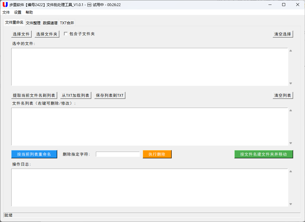 - 实时日志反馈:每个操作都会在日志区显示进度,比如 "已选择 25 个文件(自然排序)"" 从 list.txt 加载 30 个文件名 ",让用户清晰掌握处理状态。