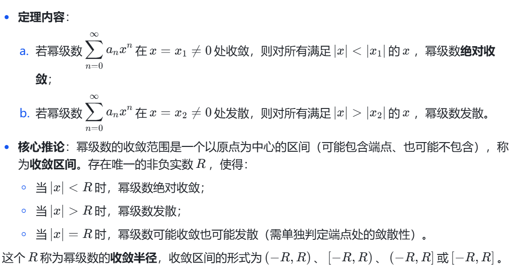 简单来说,就是你如果找到了一个x0为收敛点,则其内部都是绝对收敛的(绝对收敛是收敛的更严苛形式,加绝对值收敛、本身也收敛,同时由绝对收敛可以推导出本身收敛);如果你找到了一个发散点x0,那么从x0开始往外的全都发散。