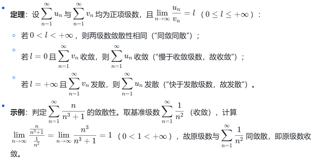 正项级数作为常数项级数的重要组成部分,其审敛法在后续具有指导意义。通常有比较审敛法、比较审敛法的极限形式、比值审敛法、根值审敛法。