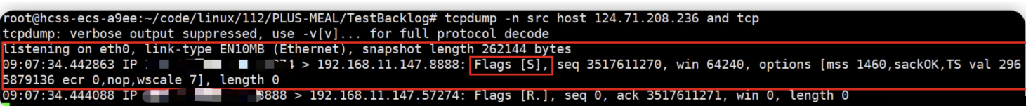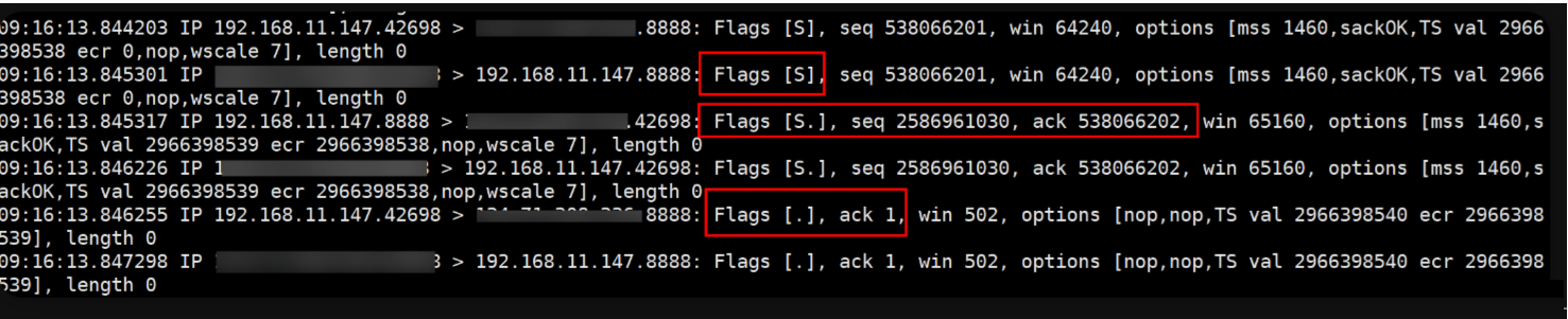 bashtcpdump -n src host ip地址 and tcp此时我们就抓取到了 Flags 为 S 的 SYN 报文