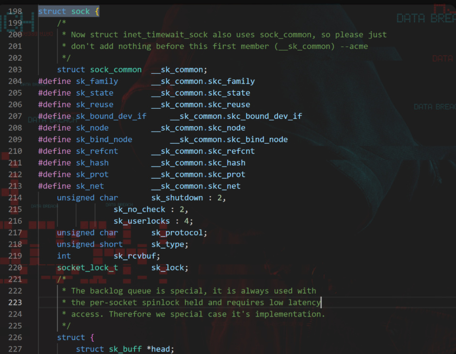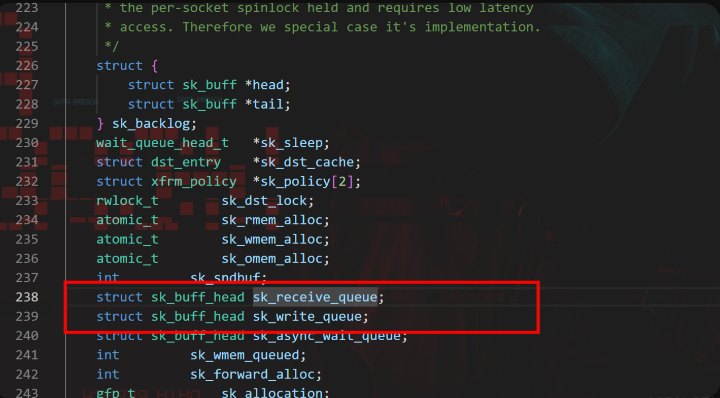 cppstruct sk_buff_head sk_receive_queue; struct sk_buff_head sk_write_queue;这两个队列对于网络通信至关重要,因为它们直接参与了数据的接收和发送过程。今天不详细讲解。