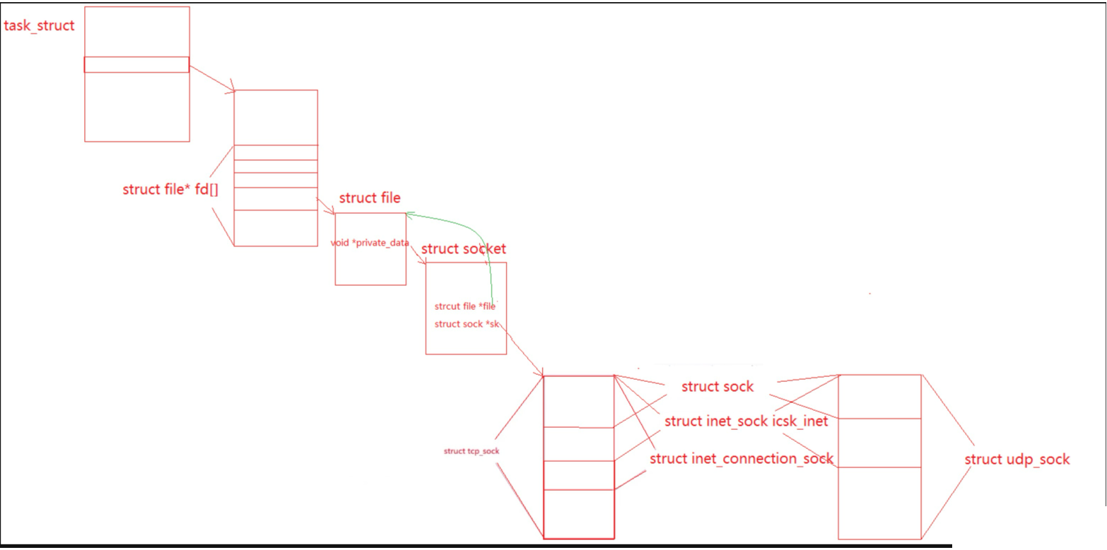 🐑 在 struct file 结构体有一个指针 void private_data*, 这个指针指向 struct socket 结构体。这样两个结构体就联系起来了!