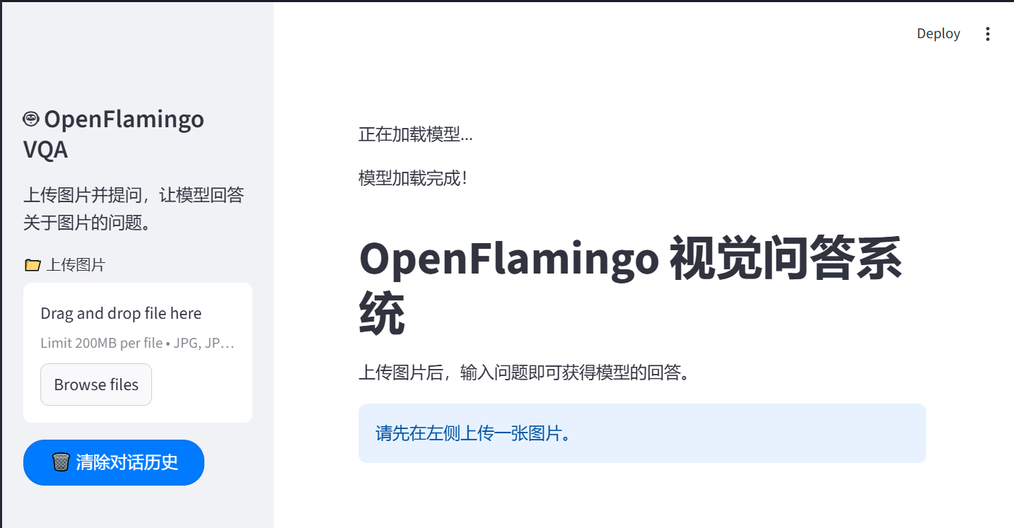 pip install open-flamingo为了创建基于Flamingo的问答系统,还需要支持图片上传和实时问答,安装streamlit