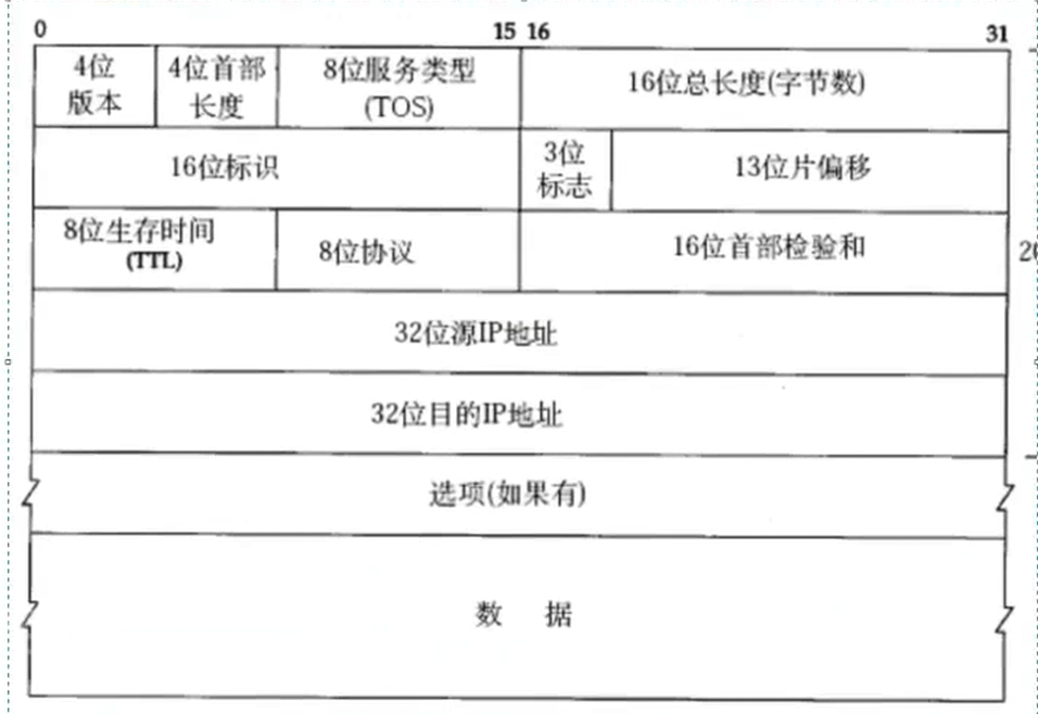 选项字段(不定长,最多40字节):可选信息,目前很少使用。