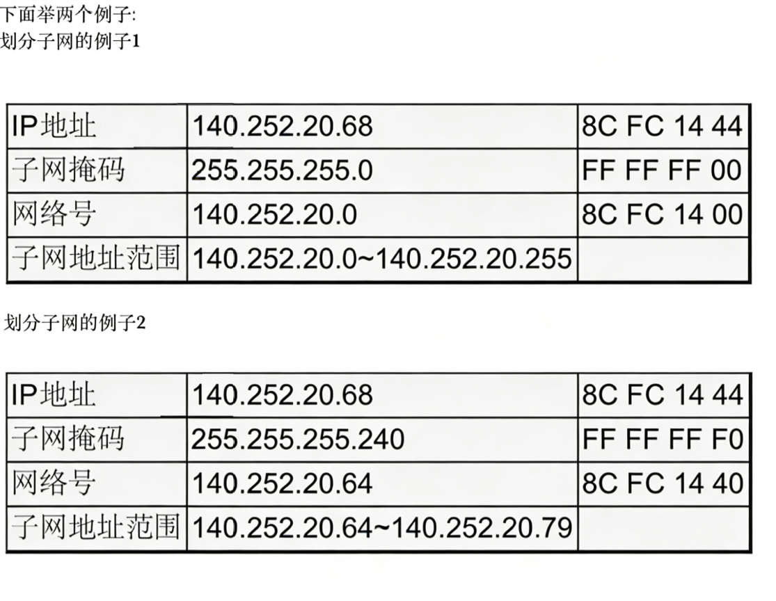IP地址和子网掩码还有⼀种更简洁的表示方法,例如140.252.20.68/24,表⽰IP地址为140.252.20.68,子网掩码的高24位是1,也就是255.255.255.0