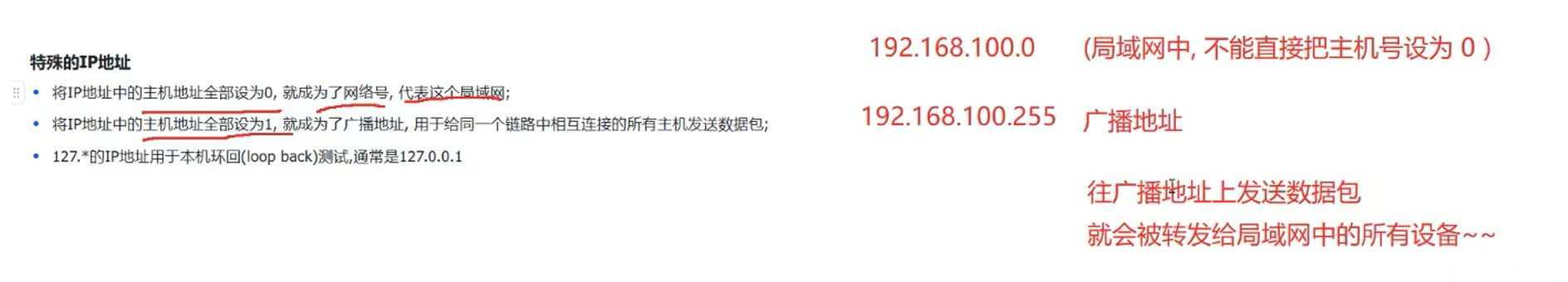 往 "广播地址" 发送数据包,相当于在当前局域网内 "群发"------ 这个数据包会被转发给同一局域网里的所有设备(但只局限在当前局域网,出不了这个网段)。