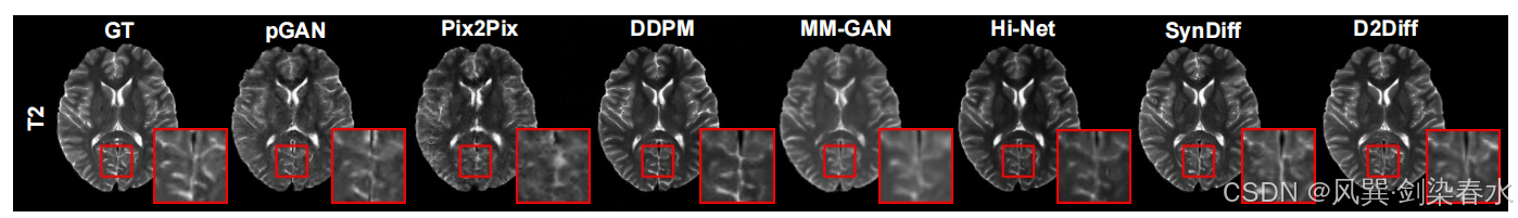 (3)对比模型基线:Pix2Pix,pGAN,DDPM,Hi-Net,MM-GAN,SynDif;