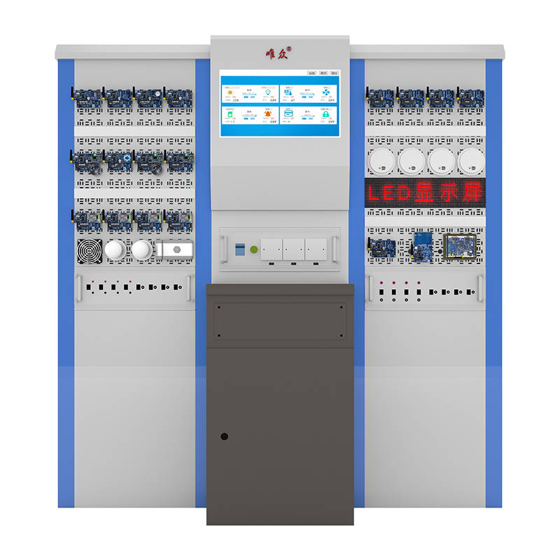 物联网实训装置与物联网综合实训台则是进阶型实训的核心装备。其中,实训装置以模块化设计为特点,可根据教学需求灵活组合感知、通信、控制等功能模块,开展针对性的专项实训;综合实训台则实现了更高层次的系统集成,搭载了工业级核心板、多类型传感器阵列及上位机监控系统,可开展数据融合处理、智能决策控制等复杂实训项目,模拟工业物联网、智能监控等真实场景,提升学生的系统集成与调试能力。