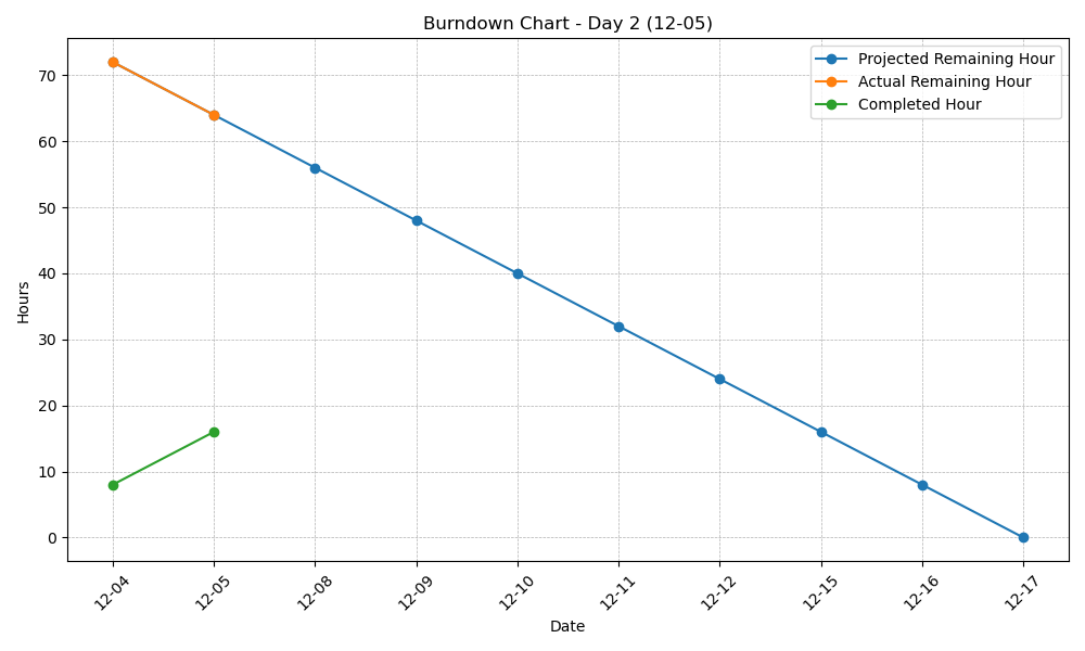 | 日期 | Projected Remaining Hour | Actual Remaining Hour | Completed Hour(累计) |