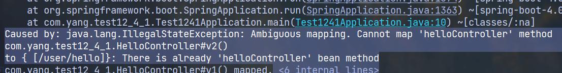 注意 @RequestMapping 在修饰方法时不能映射相同的路径,否则会启动失败。
