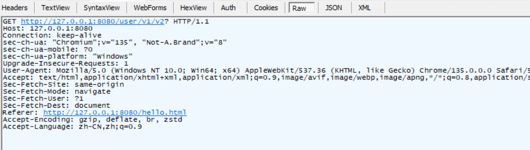 我们同时可以通过 Fiddler 抓包来查看结果,正是 GET 请求。