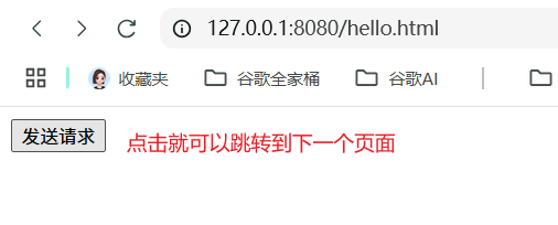 我们可以通过 form 表单来构造请求。在 static 文件夹下新建 hello.html 文件。这里不能直接在 IntelliJ IDEA 里面打开,需要在地址栏输入链接 http://127.0.0.1:8080/hello.html。