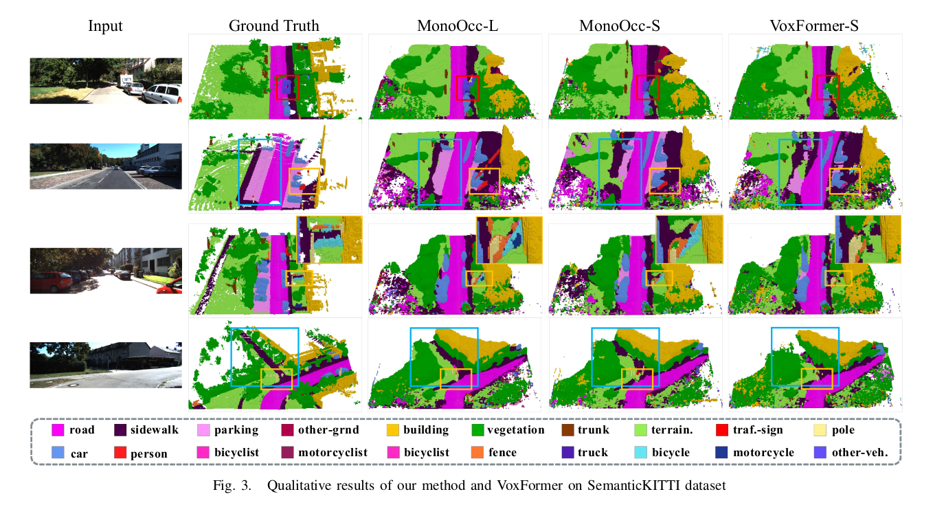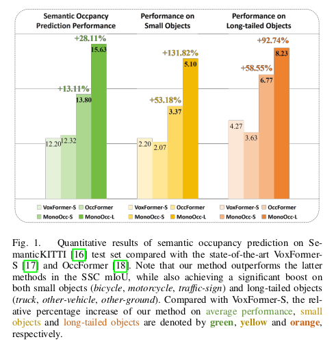 于是,导致框架优化困难,预测效果不佳,尤其是针对小物体和不常见的物体的识别效果差。为了解决这些问题,本文提出了 MonoOcc,主要改进有两点: