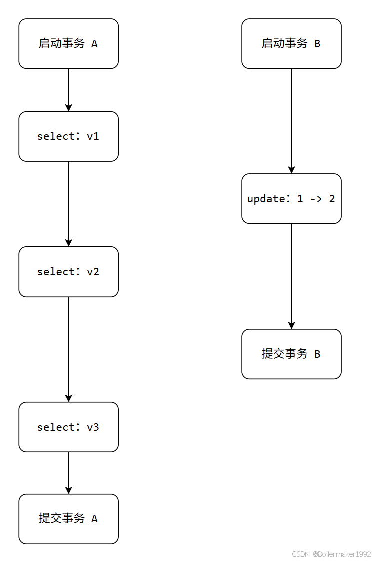 在一个事务中你读到了一个字段的不同值。这种情况叫 "不可重复读",因为不保证你在事务中每次读取数据都是一致的。