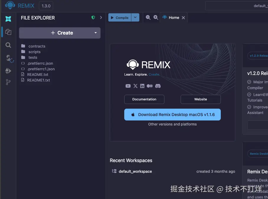 访问 remix.ethereum.org/,这就是你的战场。界面一打开看着复杂,但其实就这几个模块: