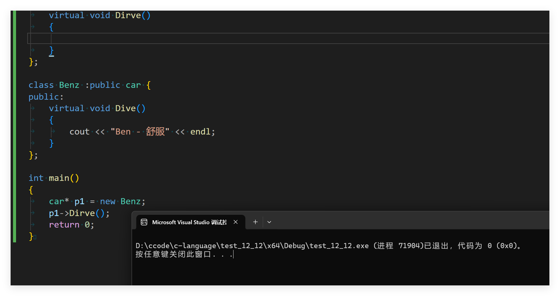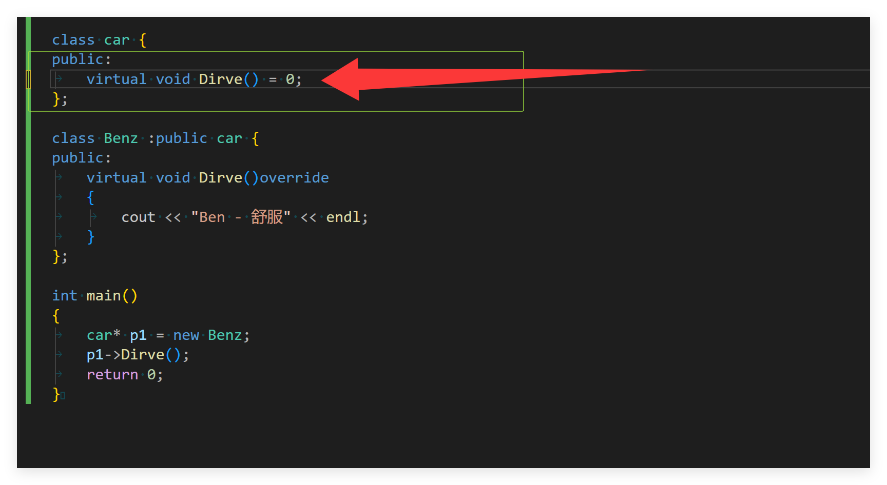 调用该函数 - 继承时:派生类的虚函数表包含重写的函数指针。