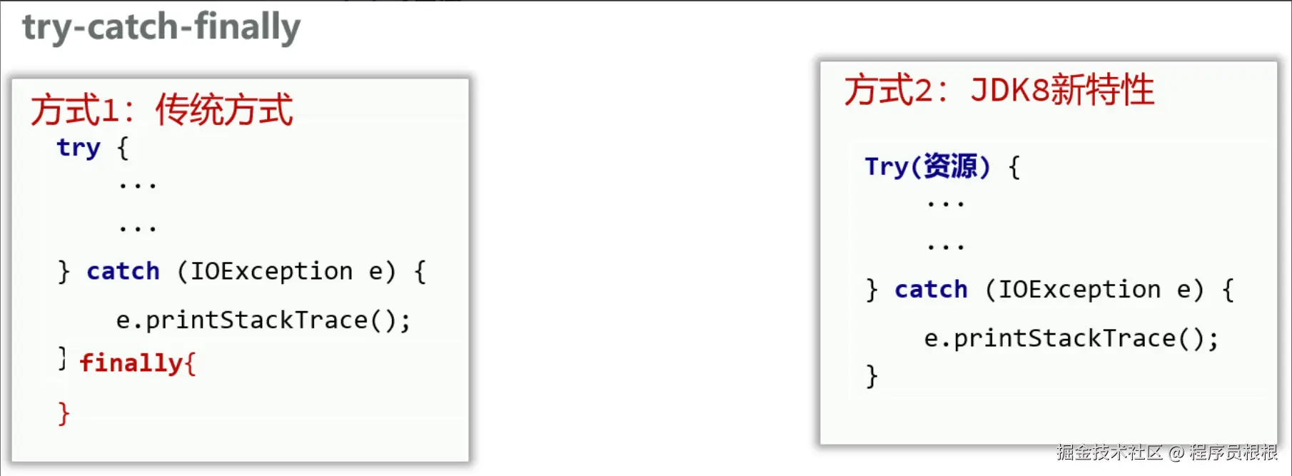 //finally的作用:无论try里面的代码是否发生异常都会执行finally里面的代码,确保有效资源可以释放