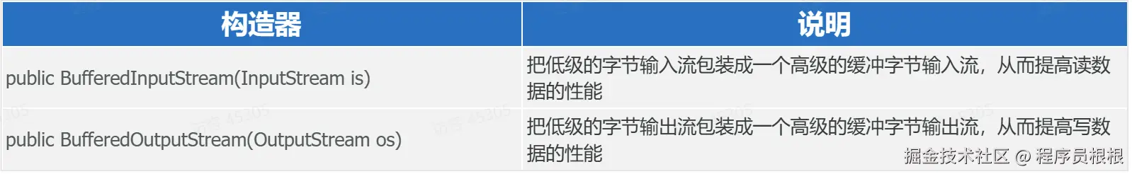 作用:可以提高字节流读写数据的性能 原理:缓冲字节输入流自带了8KB缓冲池;缓冲字节输出流也自带了8KB缓冲池。