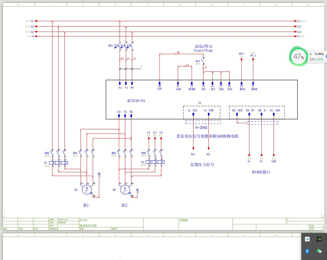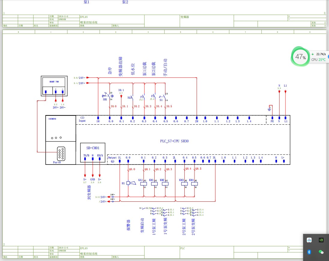 西门子S7-200SMART_PLC基于RS485通讯恒压供水一拖二程序样例,采样PLC+smart700触摸屏与ABB变频器MdbusRTU_rs485通讯,执行变频器PID实现恒压供水,程序为实际项目案例,程序带有注释说明,恒压供水动作说明,ABB变频器参数设置说明,施工用电路图纸。