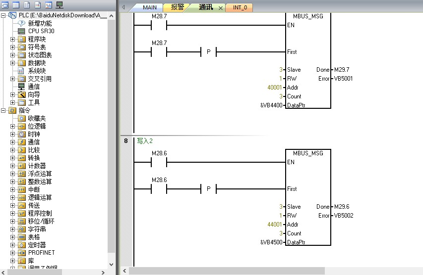 MBUS_MSG VB200:16, 1, 40001, 2 //读40001-40002寄存器