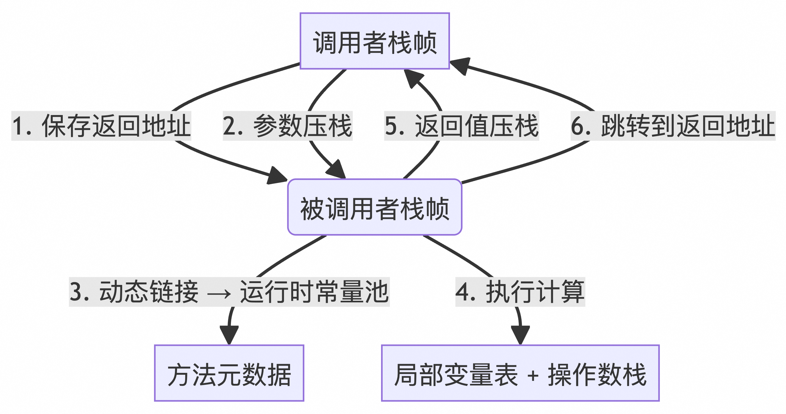 → 于是有了 方法返回地址(Return Address) ------ 它是控制流的"归途信标"。